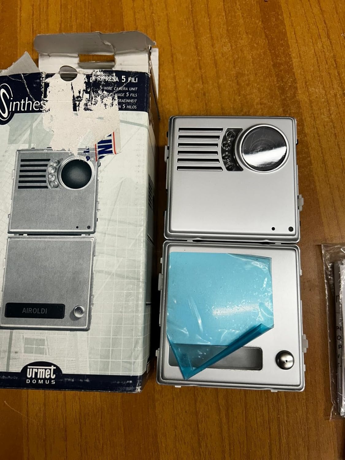 Gambar 1: URMET Synthesi Video Module 1745/21 as supplied in its original packaging, showing the front panel design.