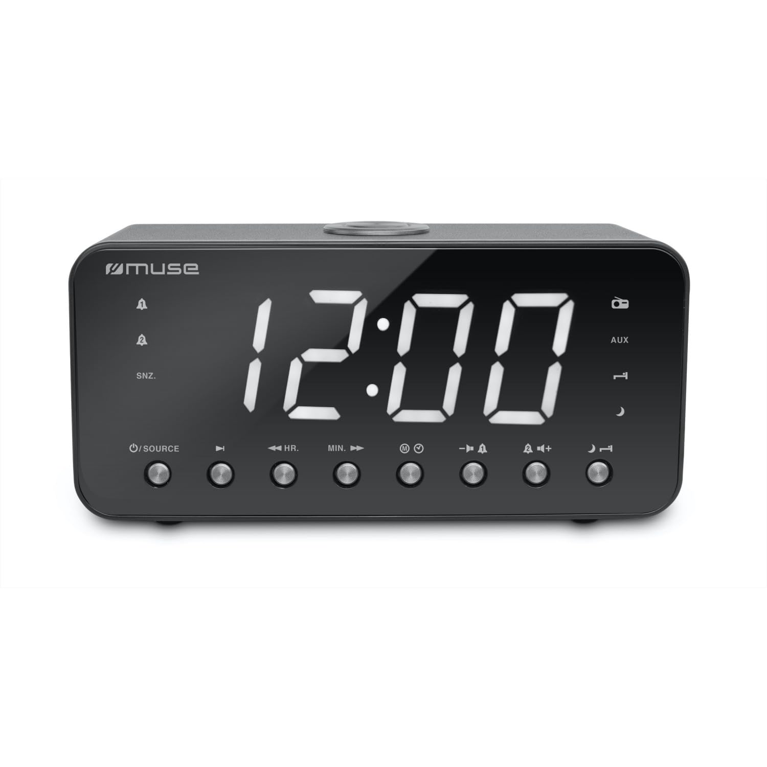 - SNOOZE / SLEEP / DIMMER: Press to activate snooze, set sleep timer, or adjust display brightness.